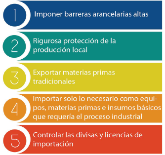 Para lograrlo, el Estado se erigió como el rector de la economía e intervino en su orientación y regulación, aplicando una serie de medidas proteccionistas como: