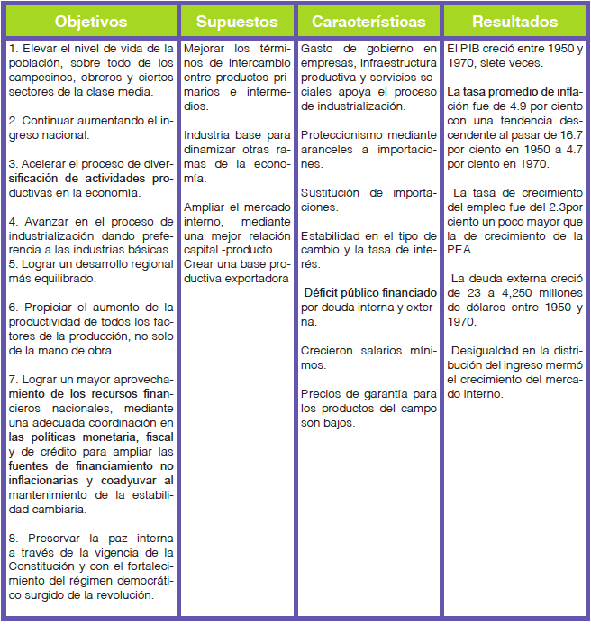 Al final de este tema, identificarás sus principales características que te proporcionarán los elementos básicos para valorar sus logros y limitaciones a fin de contrastarlos entre sí, pues en este amplio periodo de 42 años, hubo aciertos y desaciertos.