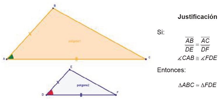 Si dos triángulos tienen un par de lados proporcionales y el ángulo comprendido entre esos lados es congruente en ambos casos, los triángulos son semejantes. Se muestra en la figura 3.14.