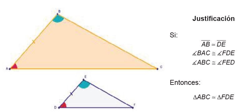 Si dos triángulos tienen dos parejas de ángulos congruentes entre ellos, significa que son semejantes. Se muestra en la figura 3.15.