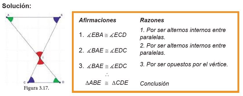 A éstos les llamamos lados homólogos de la figura, los cuales son aquellos que se oponen a los ángulos iguales. Para el presente ejemplo de la figura 3.5, tenemos
