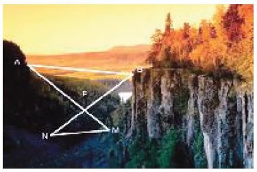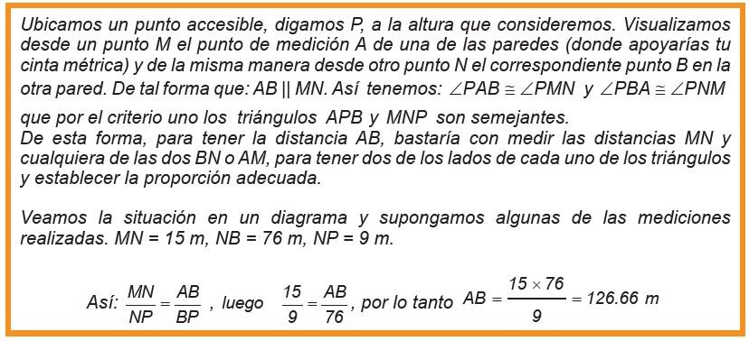 Ejemplo 3: En la figura 3.18, se observa la parte baja de un acantilado y el objetivo es medir la distancia que hay de pared a pared del mismo, en la parte más alta de cada lado. Supongamos también que no es posible medir la distancia requerida de la manera tradicional: ¿cómo resolver la situación?