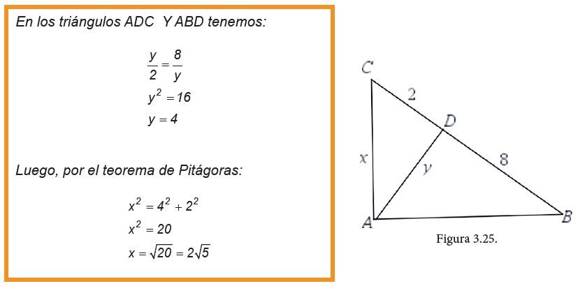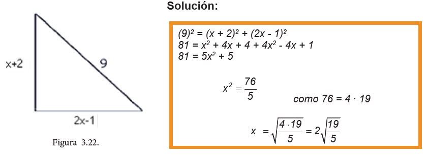 Ejemplo 2: En el siguiente triángulo (figura 3.22) calcula el valor de la incógnita aplicando el teorema de Pitágoras.