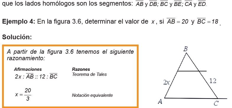 Algunos autores refieren el teorema anterior como el de Tales, otros le llaman teorema fundamental de la proporción. Lo importante es que te des cuenta que es un caso particular del teorema de Tales y descubrir la forma en la que puedes emplearlo para resolver diversas situaciones. En semejanza es fundamental identificar la correspondencia de los lados, es decir, cuáles son los lados que se corresponden.
