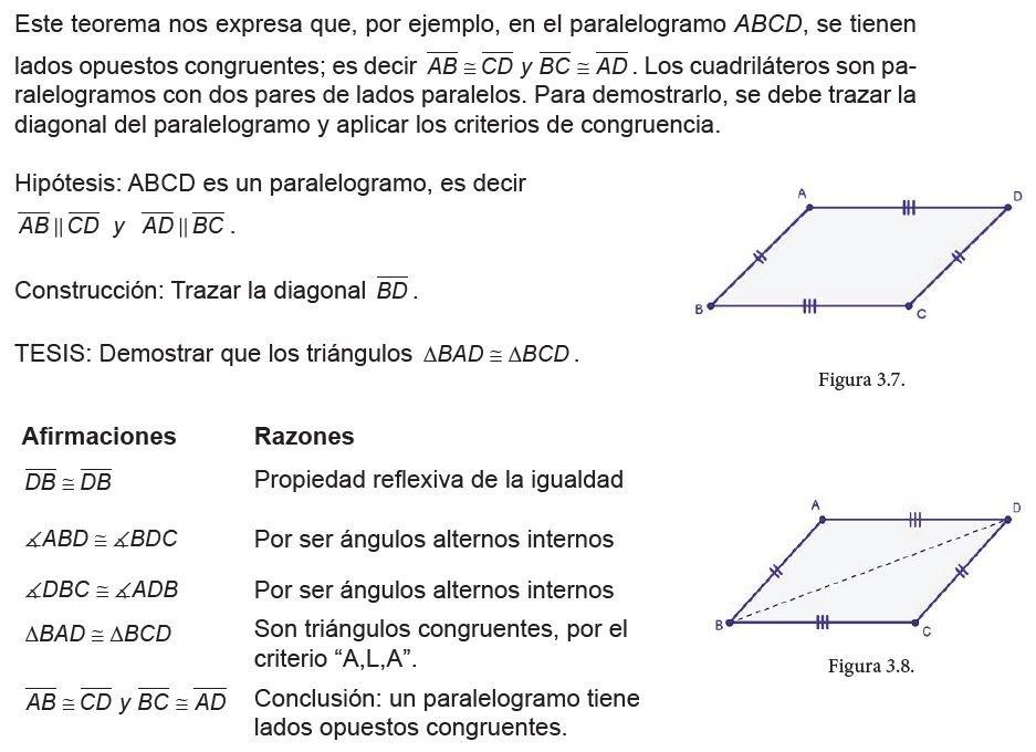 “Los lados opuestos de un paralelogramo son congruentes entre sí”.