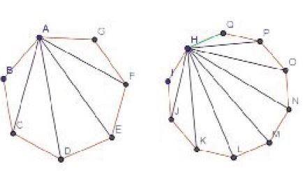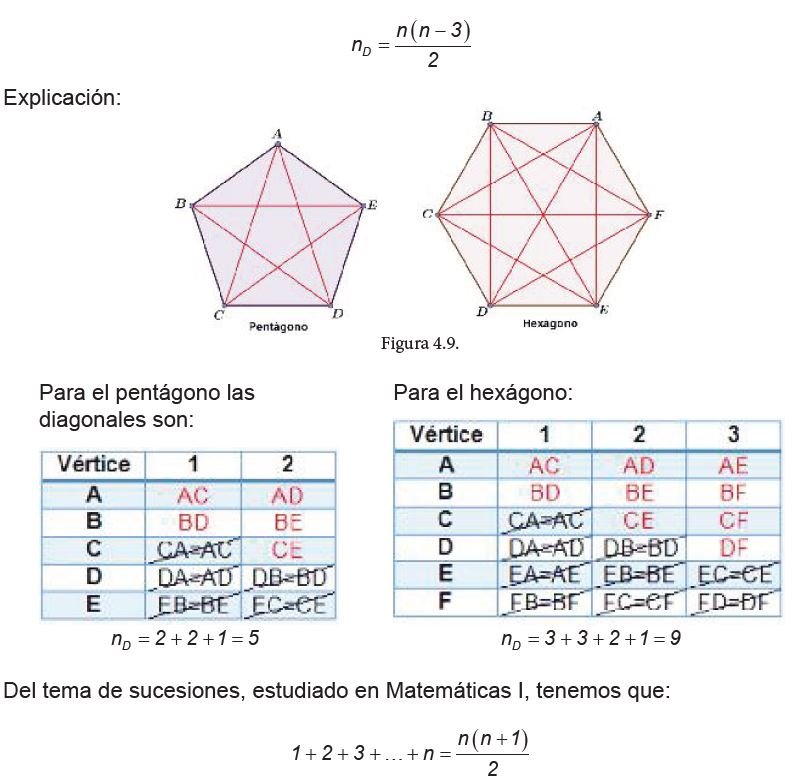 En la figura 4.7 se observa que a partir de un vértice de un polígono se pueden trazar un número definido de diagonales en función del número de lados.