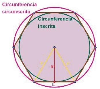 - Todo polígono regular tiene una circunferencia inscrita de radio igual a su apotema y una circunferencia circunscrita de radio igual al segmento que une el centro con uno de los vértices.