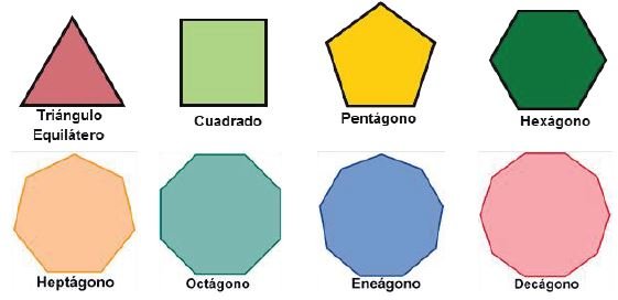 Por la medida de sus lados, los polígonos pueden ser regulares o irregulares. En la figura 4.2 se presentan algunos polígonos regulares: