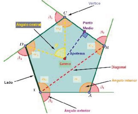 Mira con atención la figura 4.5, en ella se muestran los elementos principales de un polígono, los cuales describiremos a continuación.