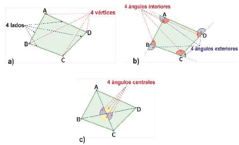 - Ángulo interno. Es el ángulo interior que se forma con dos lados consecutivos.