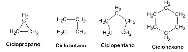 Si observas a tu alrededor, las paredes, los techos, el piso, el pizarrón, las bancas, las sillas, las puertas, … en fin, lo que te rodea, verás muchas cosas; pero lo importante es que observes que tiene lados rectos y circulares, las cuales al unirse representan figuras como rectángulos, cuadrados, círculos, triángulos, entre otras. Y no solo en tu salón puedes apreciar estas formas, en tus clases de química orgánica, cuando veas el tema de hidrocarburos cíclicos, observarás las siguientes cadenas cerradas o cíclicas.