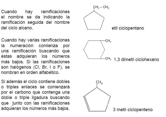 Ahora explicaremos las reglas de nomenclatura UIQPA o IUPAC para una cadena cíclica.