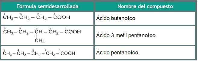 En el caso de los ácidos carboxílicos, el carbono del grupo funcional siempre recibe el índice número 1, por encontrarse en el extremo de la cadena. No olvidar que debemos agregar la palabra ácido al principio y la terminación –oico.