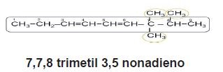 3. Cuando se presenta más de un enlace doble, se usan las terminaciones – dieno, trieno, etc., y se indica el número de carbono en el que se localizan.