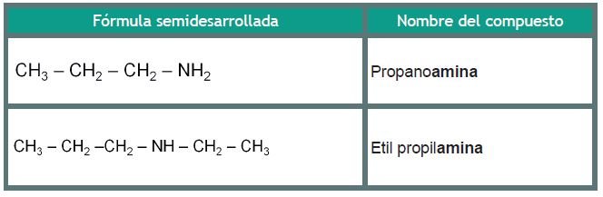 Son compuestos con tendencia ácida, utilizados comúnmente para la fabricación de fertilizantes. Se nombran las cadenas como si se tratara de radicales y finalmente la palabra amina.