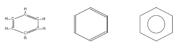 Actualmente se acepta la representación gráfica del benceno como un hexágono regular con un círculo en su interior, que representa los electrones compartidos por todos los átomos de carbono.
