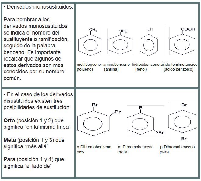 La nomenclatura de los derivados aromáticos: