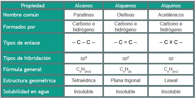 Hidrocarburos (alcanos, alquenos, alquinos y aromáticos)
