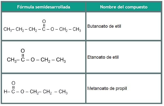 Los ésteres se encuentran de forma natural en flores y frutas a los que les dan olor y sabor, aunque ya hay ésteres obtenidos de manera sintética para usarse como aromatizantes, saborizantes y perfumes. Otros son utilizados en farmacología y algunos más para la fabricación de plásticos y fibras textiles.