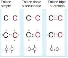 Para que se formen diversos enlaces entre el carbono, otros átomos o el mismo carbono se debe hibridar el carbono. El carbono es el único elemento que sufre los tres tipos de hibridación que hay: sp3, sp2 y sp, originando así compuestos que presentan enlaces covalentes sencillos, dobles y triples en su estructura.
