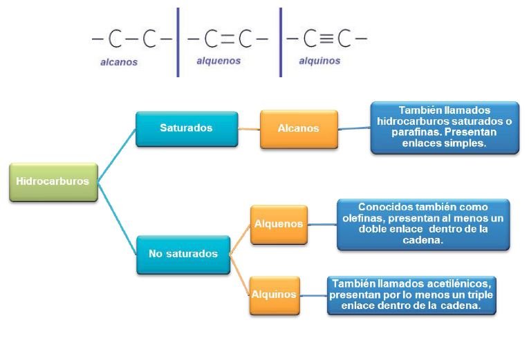insaturadas y lineales o ramificadas. Los hidrocarburos se clasifican en: