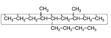 • Regla 3. Notamos que contiene dos radicales metil y un radical butil.