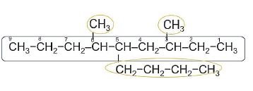 Finalmente damos el nombre del compuesto: 3,6 dimetil 5 butil nonano